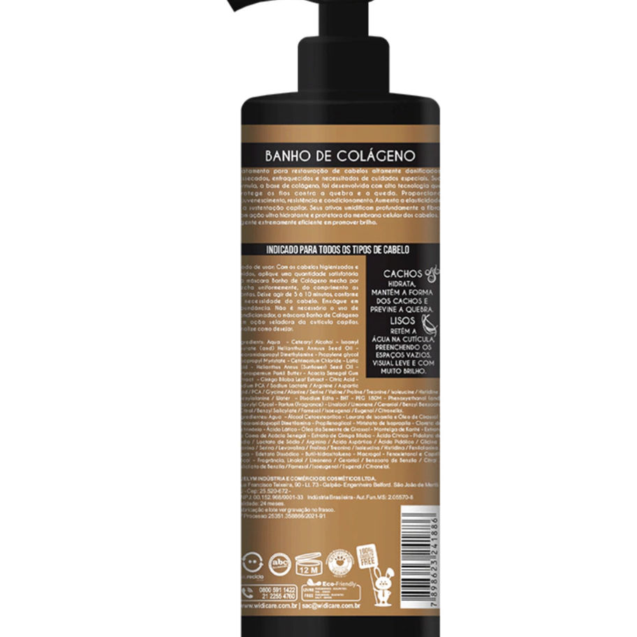 The COLLAGEN BATH MASK is a hair treatment developed to restore highly damaged, dry and weakened hair that requires special care. Its advanced formula is based on plant collagen and was developed with high technology to protect the hair against breakage and hair loss. This treatment provides rejuvenation, resistance and conditioning to the hair, increasing elasticity and hair support. In addition, its active ingredients deeply moisturize the hair fiber, offering an ultra-hydrating and protective action on the hair's cell membrane. This mask is highly effective in promoting intense shine to the hair.